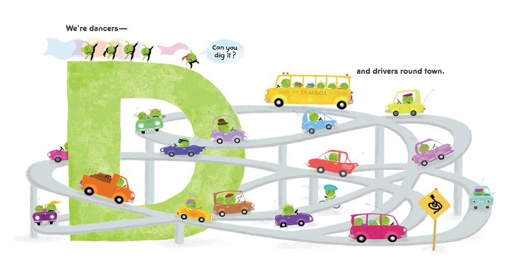 Description from Publisher: Get ready to roll through the alphabet with a jaunty cast of busy little peas. Featuring a range of zippy characters from Acrobat Peas to Zoologist Peas, this picture book highlights a variety of interests, hobbies, and careers; each one themed to a letter of the alphabet and gives a wonderful sense of the colorful world we live in.